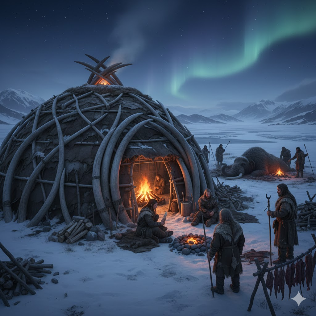 - Elaborate settlements: Semi-subterranean dwellings made from mammoth bones and hides.